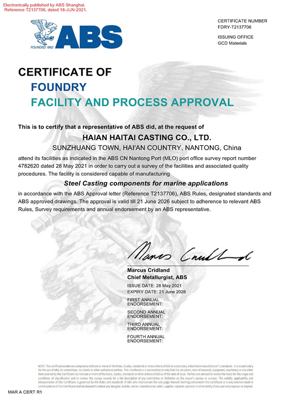 海安海太鑄造有限公司是一家民營法人獨資企業,位于江蘇省海安縣高新技術開發區,公司下設全資子公司江蘇鵬飛海太機械有限公司和上海辦事處,總注冊資金2.2億人民幣。距啟揚高速(S28)海安西出口3公里,距上海機場、南京機場僅2小時車程。公司占地面積99800多平方米,現有建筑面積53600多平方米,擁有2個鑄鋼生產車間。2014年投資1.2億,新建2萬平方米的金工車間,并與2015年3月投入生產。公司擁中高級職稱技術管理人員56人。2017年繳納國地兩稅3300多萬元。